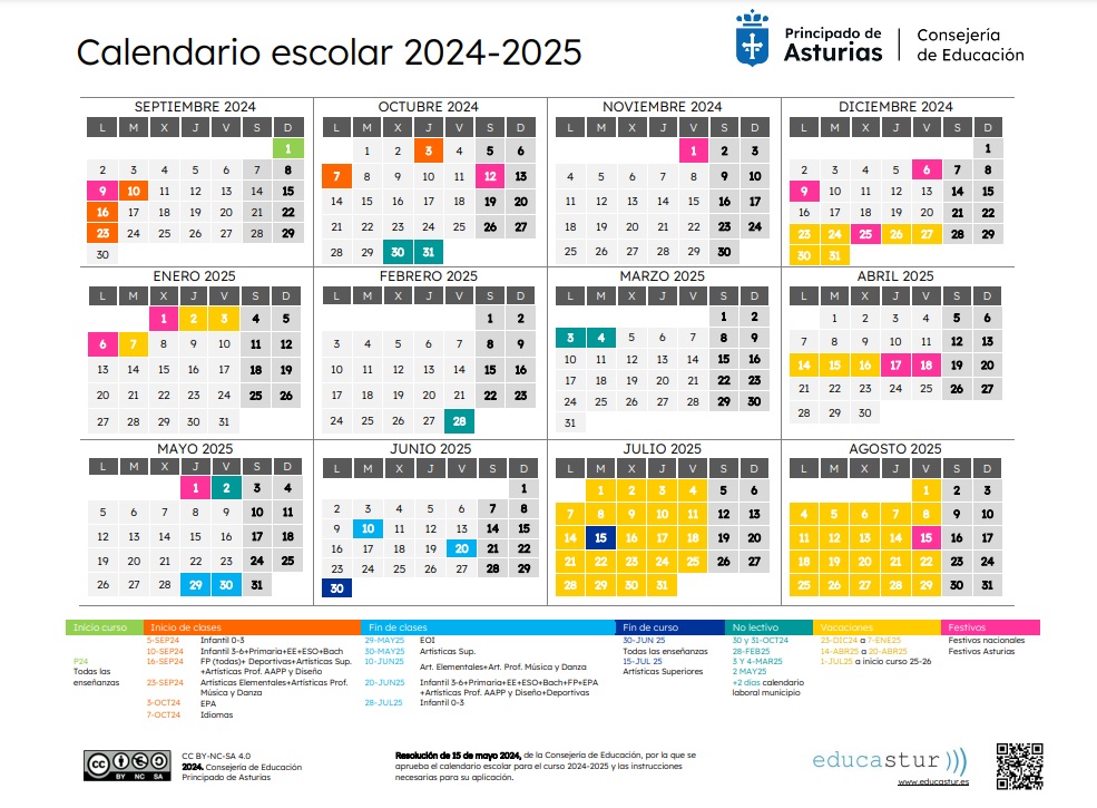 Resolución de 8 de mayo 2025, de la Consejería de Educación, por la que se aprueba el calendario escolar para el curso 2025-2026 y las instrucciones necesarias para su aplicación (BOPA 21-05-2025).