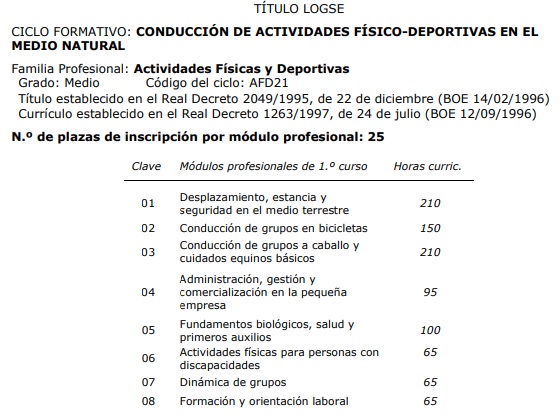 FORMACIÓN PROFESIONAL DE GRADO MEDIO - PRUEBAS LIBRES CONDUCCIÓN DE ACTIVIDADES FÍSICO-DEPORTIVAS EN EL MEDIO NATURAL - AFD 21 |